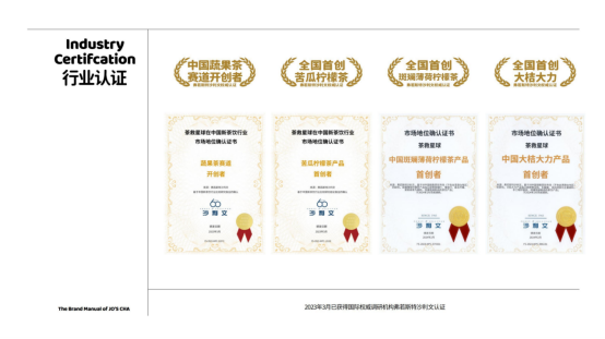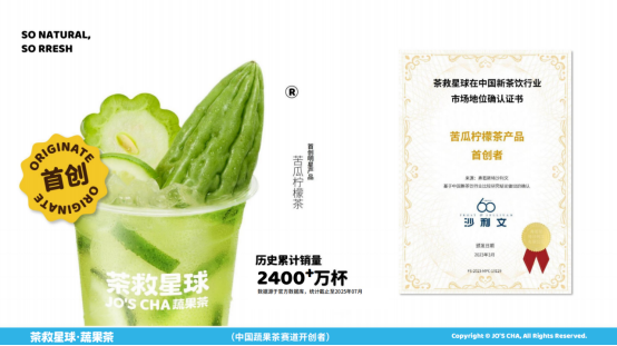 获国际权威调研机构弗若斯特沙利文多项认证,被认定为中国蔬果茶赛道开创者,以及苦瓜柠檬茶、斑斓薄荷柠檬茶、大桔大力产品的首创者。
