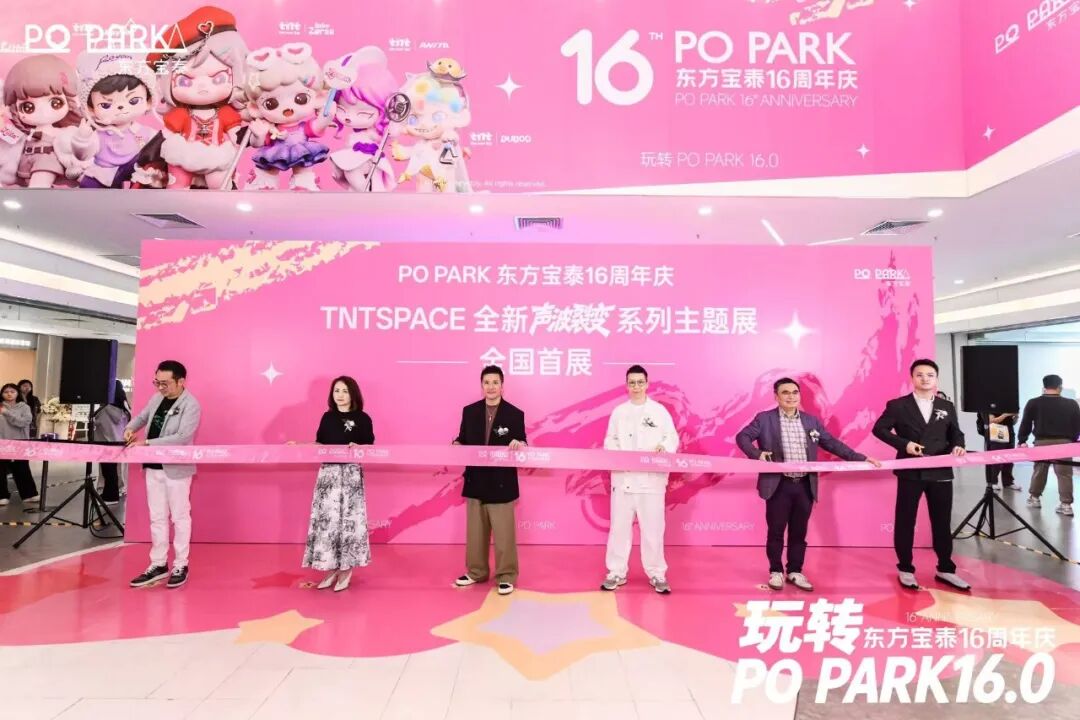 仪式在TNTSPACE超人气IP人偶Baby Zoraa、Boy Rayan、ANMOO的闪亮登场中正式拉开序幕。随后主礼嘉宾共同为“TNTSPACE全新声波裂变系列全国首展”剪彩,宣告展览正式启航。此举不仅标志着东方宝泰16周年庆系列活动进入全面爆发阶段,也预示着广州将迎来为期两个月的独家潮玩次元体验,为城市潮流文化地图注入全新活力。