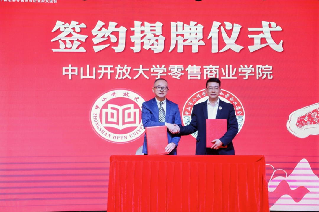 活动现场,中山开放大学与中山市个私总会零售协会正式签署战略合作协议,共同成立“零售商业学院”,并举行了隆重的签约揭牌仪式。